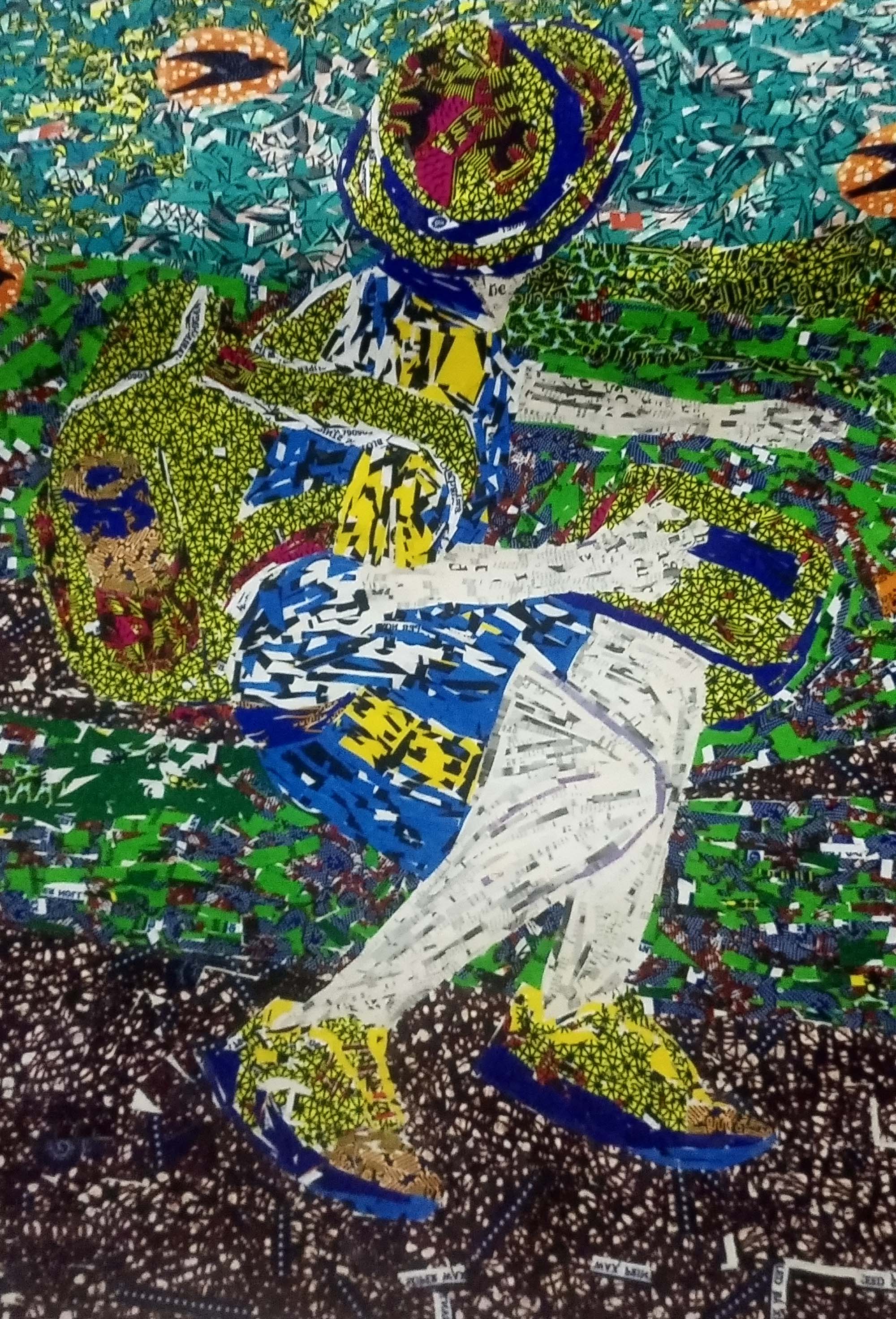 Fatric Bewong is an artist and educator who lives and works in Accra. Her interdisciplinary practice traverses the studio, the classroom, and the field. She studied at the Kwame Nkrumah University of Science and Technology (KNUST) in 2006 where she graduated with a Bachelor of Fine Art Degree (BFA) and Master of Fine Art (MFA) degree from the University of Hartford, Connecticut in 2019. Bewong sculpts with reused materials and sound improvisation with the intention to revalue them as formal objects which are colourful and plentiful yet sublime in potentials on large scales and varied scopes. Through photographs and video of herself dressed under the guise of Mother Earth (it is symbolic of the environment from which life thrives), she re-contextualises traditional Ghanaian proverbs to open up dialogues and discussions on class systems, labor, love, healing, self-care and self-actualization.